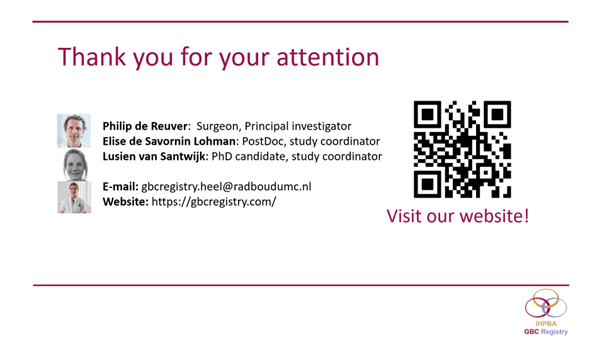 For those who were unable to attend, the presentation (ppt) can be accessed via the link below. If you have any further questions or suggestions regarding the future direction of the IHPBA GBC Registry, please do not hesitate to reach out to us.